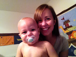 We love staying at my parents house, and somehow every time we go to visit, Joshua earns the name the "toxic avenger." This is because he ALWAYS gets sick, and this visit was his piece de resistance. Sunday night/early monday morning Joshy woke up bawling and acting really tired and uncomfortable. He went to Cam and just wanted to snuggle and fell asleep nuzzled up to his dad. I put him back in his bed, and about an hour later he woke up screaming. I was half asleep so I naturally took him back to bed with us, where he promptly vomited all over our bed, and all over Cameron. Oof. It was a rough night. But, I've never felt more like a mother than when I was cleaning him and the bed up. Gross.